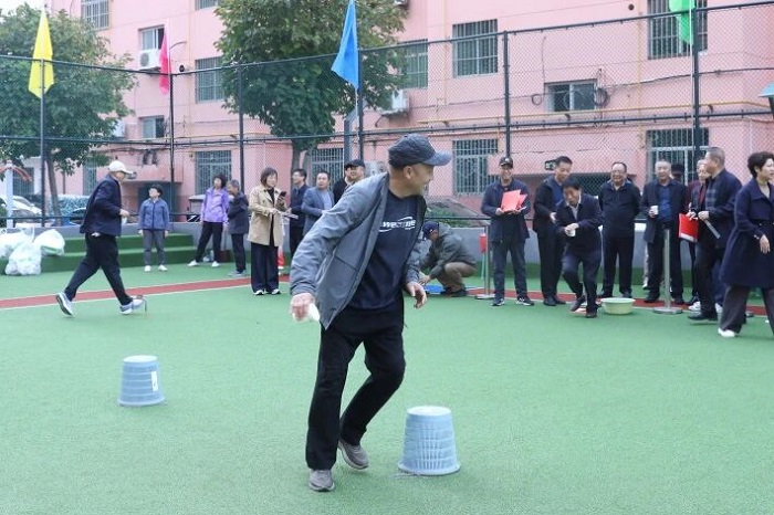 首先登场的“南水北调”挑战赛,主持人一声“开始”,现场瞬间沸腾!“慢点慢点,别洒了!”只见一群“老顽童”手握水杯,穿越重重障碍,让水流如丝般顺滑地从南流淌至北。看着一杯杯清水稳稳倒入盆中,每个人脸上都洋溢着胜利的喜悦。这不仅是简单的水流传递,更是幸福的传递,每一滴水都承载着欢笑与惊喜!
