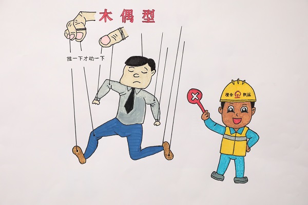 4、木偶型:突出表现为对待工作慵懒散拖、敷衍塞责,工作不推不动,推一下动一下,甚至推而不动。