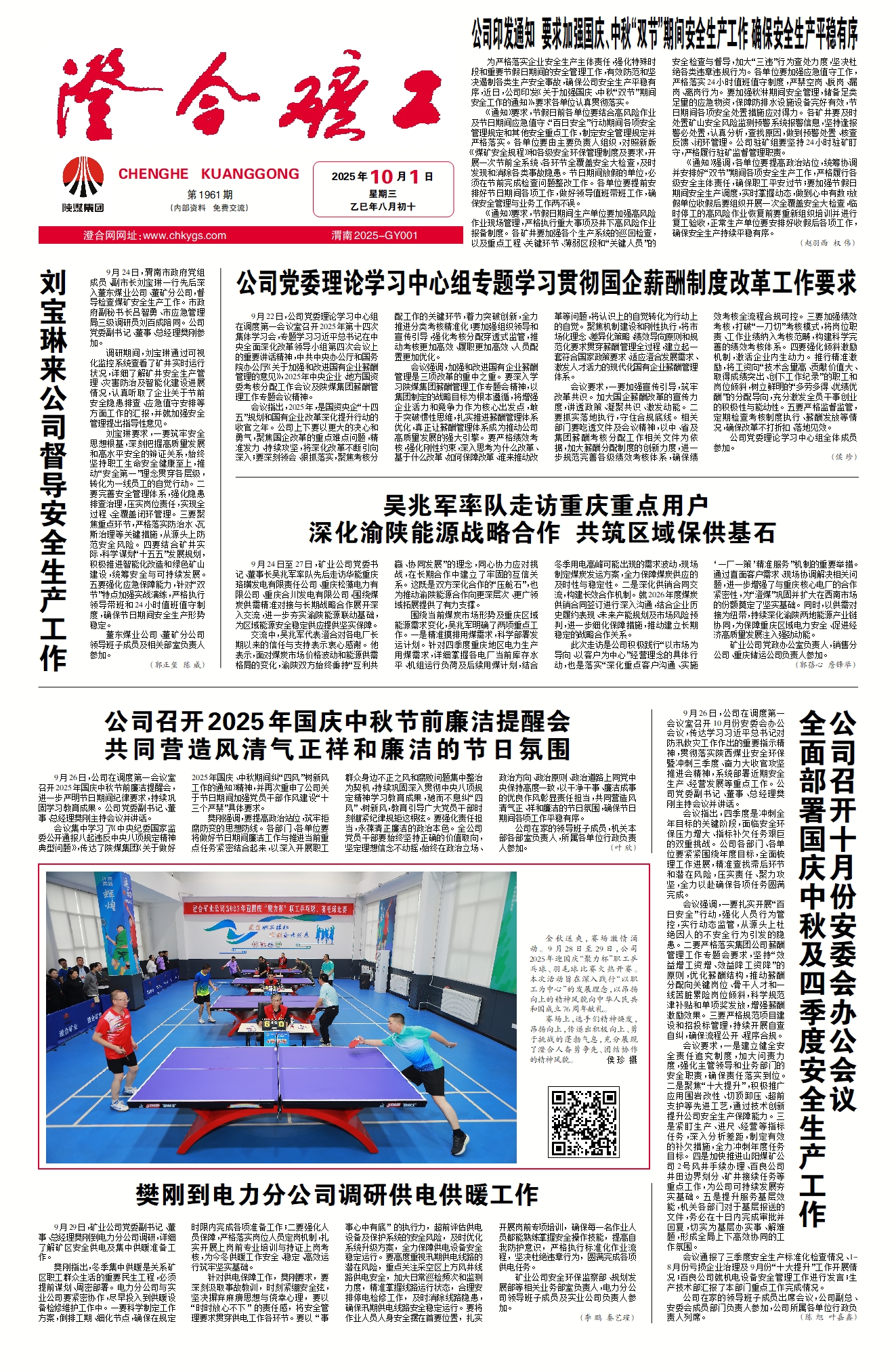 公司印发通知 要求加强国庆、中秋“双节”期间安全生产工作 确保安全生产平稳有序