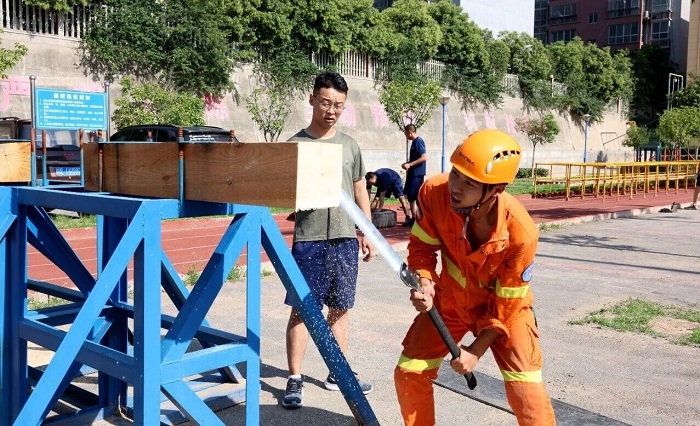 39℃的高温天,热浪滚滚。队员贾黎明在训练中突感中暑,他仅用湿毛巾简单降温后,便毅然重返训练场;王通腿部四次受伤,但他始终咬牙坚持,凭借钢铁般的意志和坚韧不拔的精神,成功完成了所有训练科目。在他们心中,只有一个共同的信念:训练场上多流一滴汗,救援现场就多一分希望。